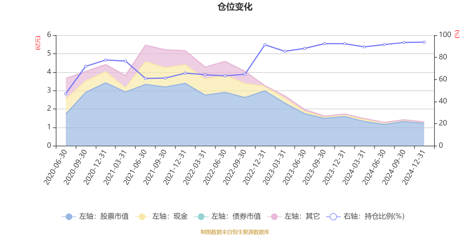据定期报告数据统计,近三年平均股票仓位为84.2%,同类平均为84.96%。2024年末基金达到93.77%的最高仓位,2020年上半年末最低,为47.2%。