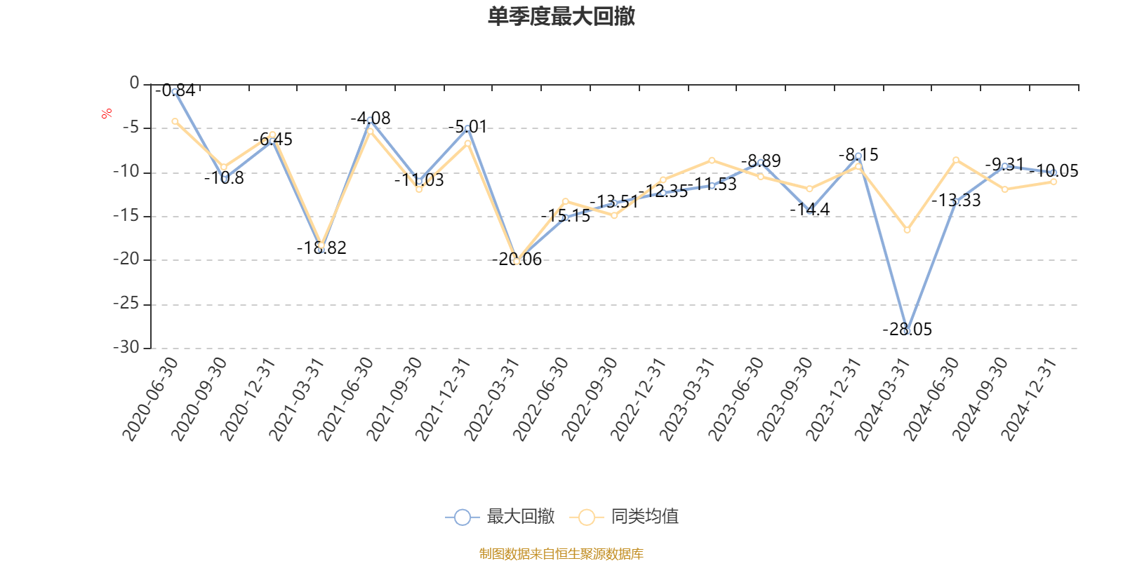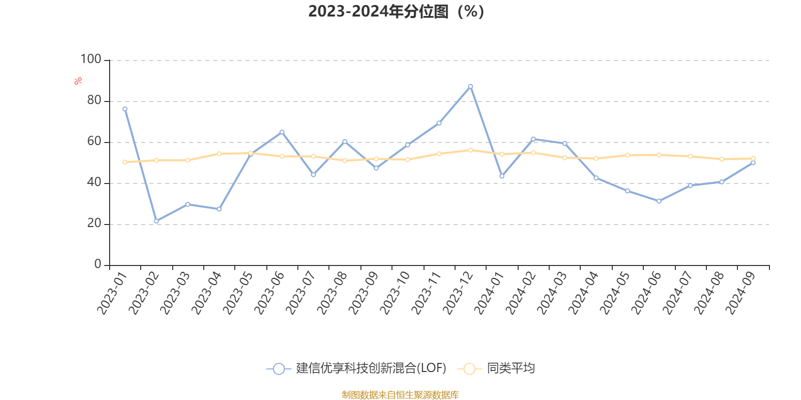 通过所选区间该基金净值增长率分位图,可以观察该基金与同类基金业绩比较情况。图为坐标原点到区间内某时点的净值增长率在同类基金中的分位数。